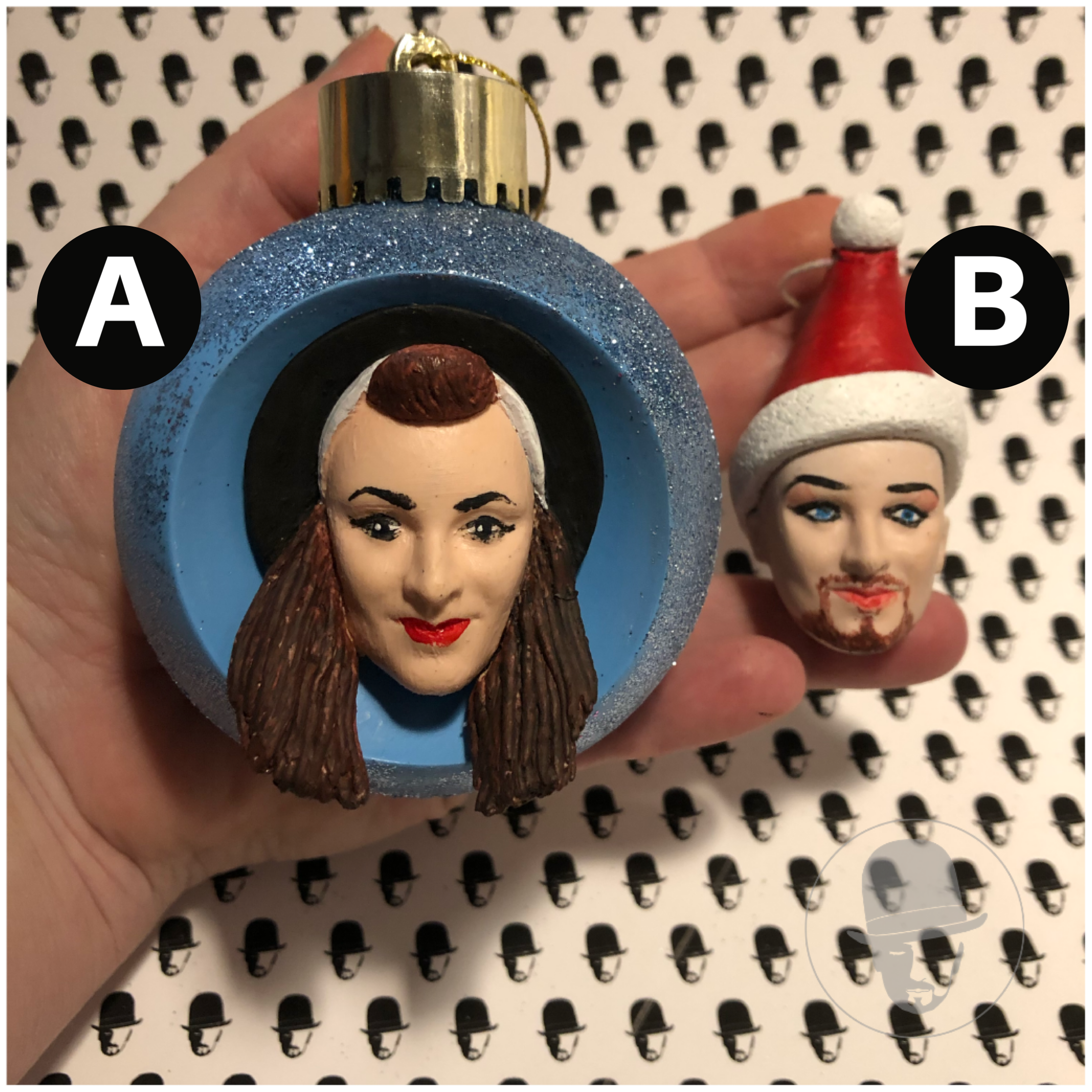 (There was going to be an 80’s Santa hat George, but I’m unhappy with the way he’s painted up. Will post the pic of the ‘C’ option bauble later tonight)